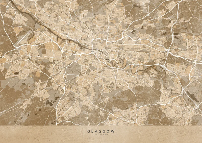 Plakát Map of Glasgow (Scotland) in sepia vintage style