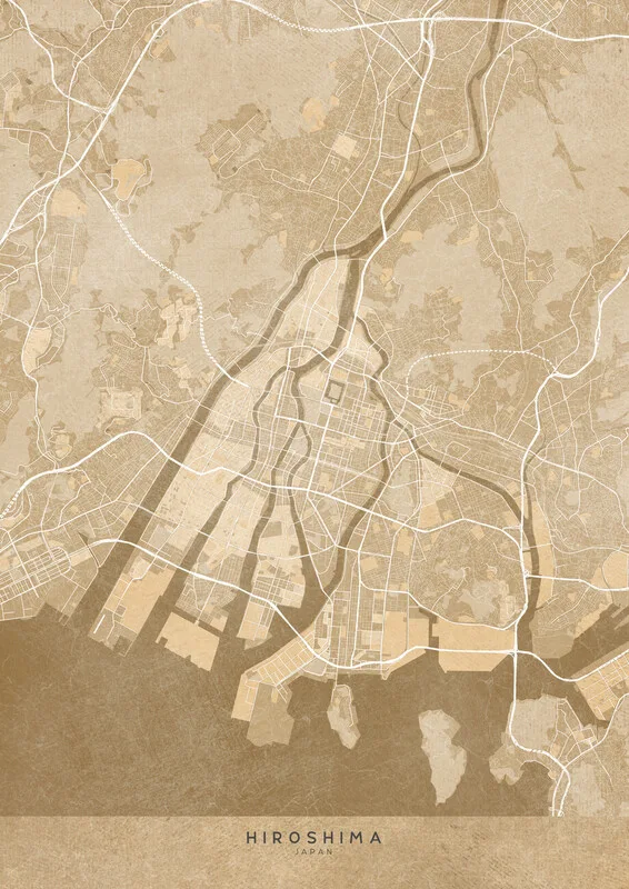 Samolepka Map of Hiroshima (Japan) in sepia vintage style