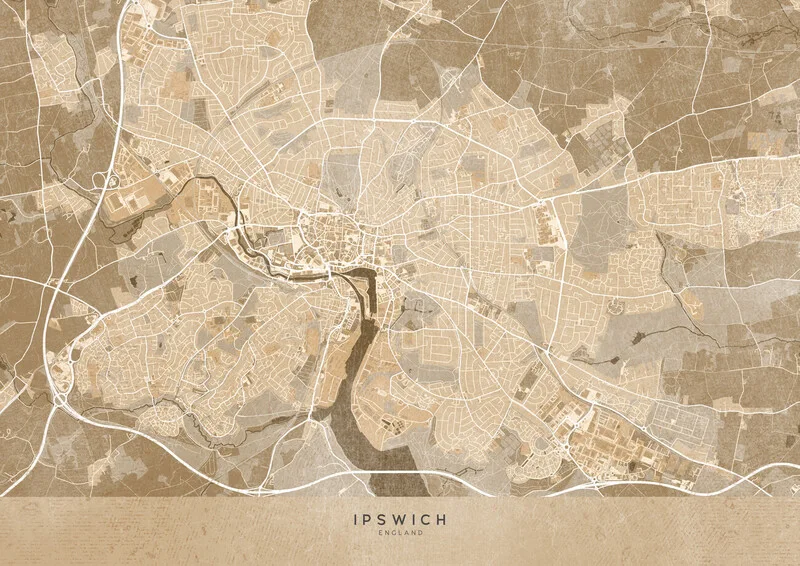 Samolepka Map of Ipswich (England) in sepia vintage style