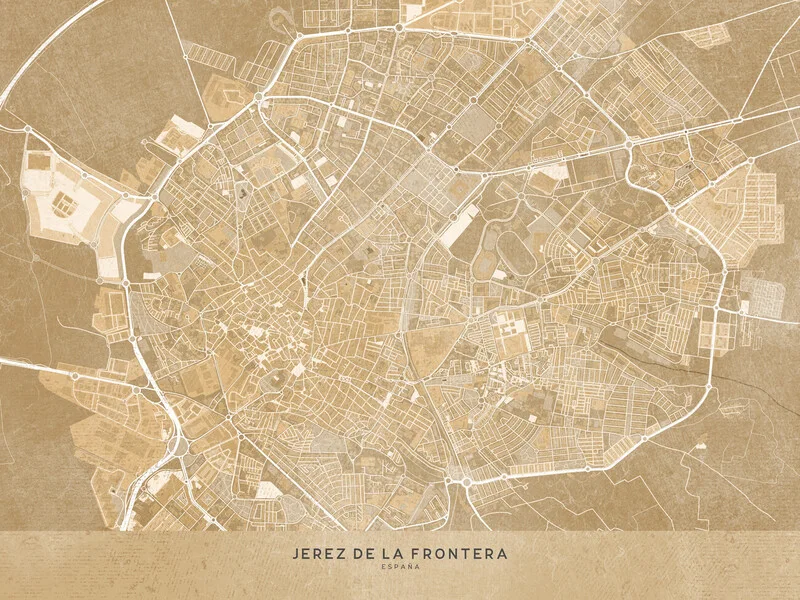 Samolepka Map of Jerez de la Frontera (Spain) in sepia vintage style