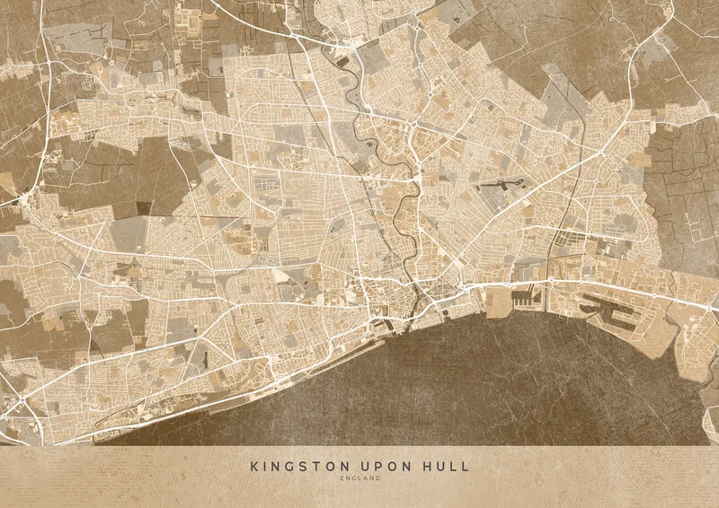 Samolepka Map of Kingston upon Hull (England) in sepia vintage style