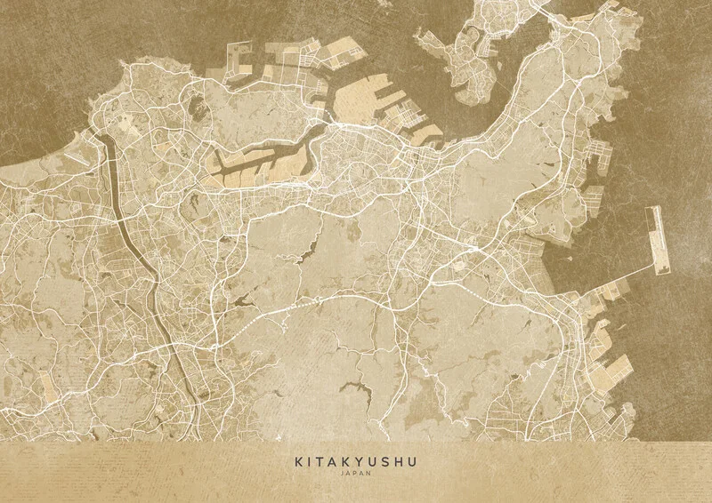 Plakát Map of Kitakyushu (Japan) in sepia vintage style