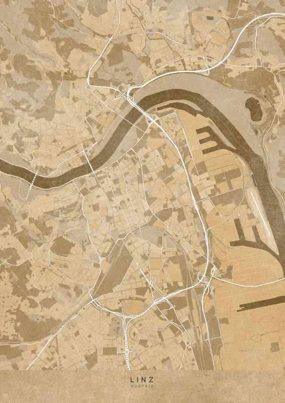 Obraz na plátně Map of Linz (Austria) in gray vintage style