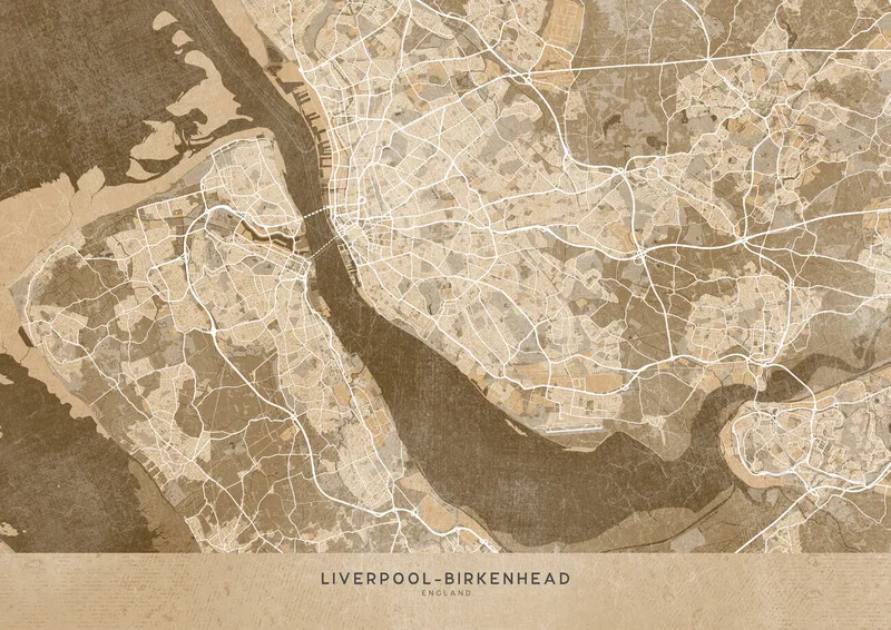 Obraz na plátně Map of Liverpool-Birkenhead (England) in sepia vintage style