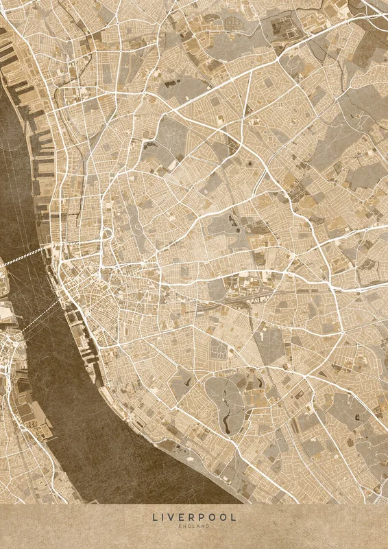 Obraz na plátně Map of Liverpool (England) in sepia vintage style
