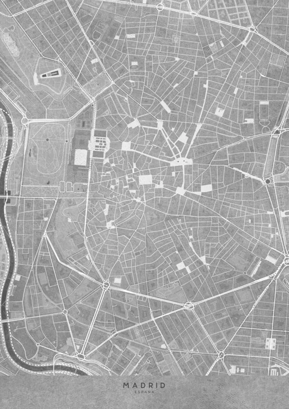 Samolepka Map of Madrid Plaza Mayor (Spain) in gray vintage syle