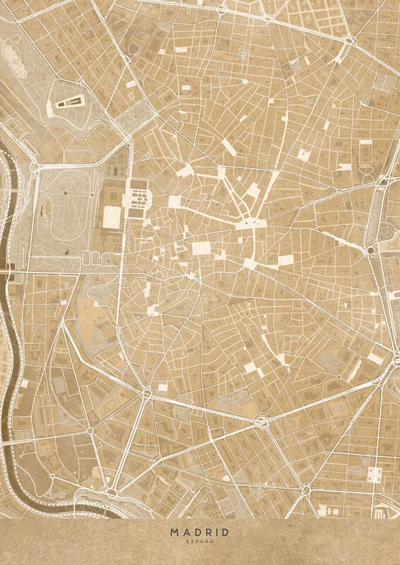 Obraz na plátně Map of Madrid Plaza Mayor (Spain) in sepia vintage syle