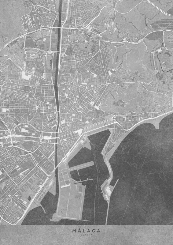 Obraz na plátně Map of Málaga downtown (Spain) in gray vintage syle