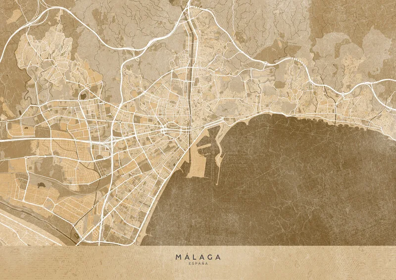 Samolepka Map of Málaga (Spain) in sepia vintage syle