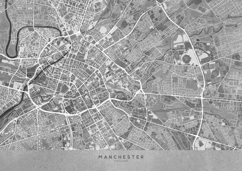 Obraz na plátně Map of Manchester downtown (England) in gray vintage style