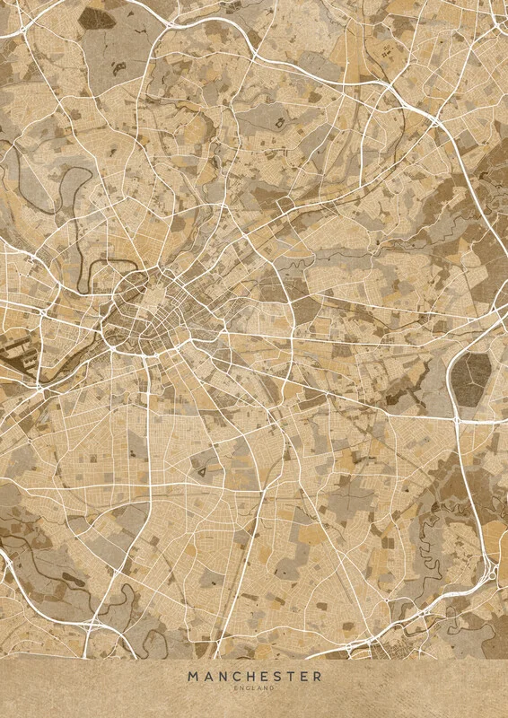 Obraz na plátně Map of Manchester (England) in sepia vintage style