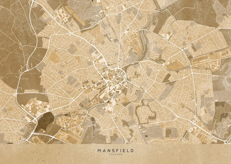 Obraz na plátně Map of Mansfield (England) in sepia vintage style
