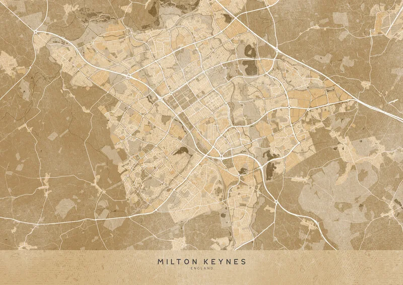 Obraz na plátně Map of Milton Keynes (England) in sepia vintage style