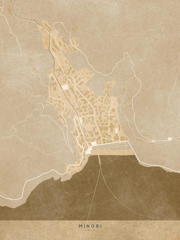 Obraz na plátně Map of Minori - Amalfi coast - (Italy) in sepia