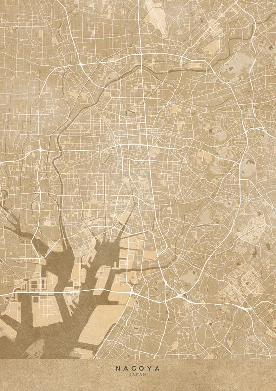 Samolepka Map of Nagoya (Japan) in sepia vintage style