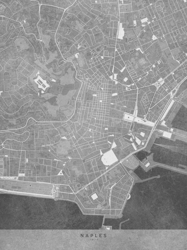 Samolepka Map of Naples downtown (Italy) in gray vintage style