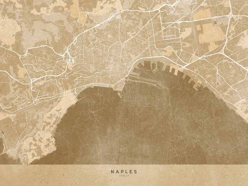 Plakát Map of Naples (Italy) in sepia vintage style