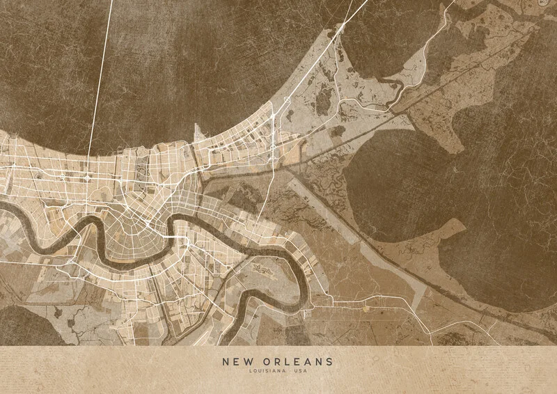 Plakát Map of New Orleans (LA, USA) in sepia vintage style