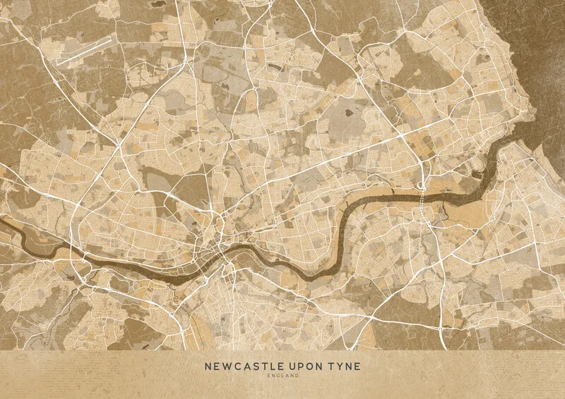 Obraz na plátně Map of Newcastle upon Tyne (England) in sepia vintage style