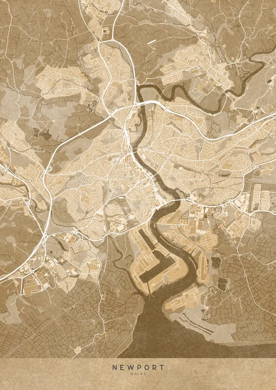 Obraz na plátně Map of Newport (England) in sepia vintage style
