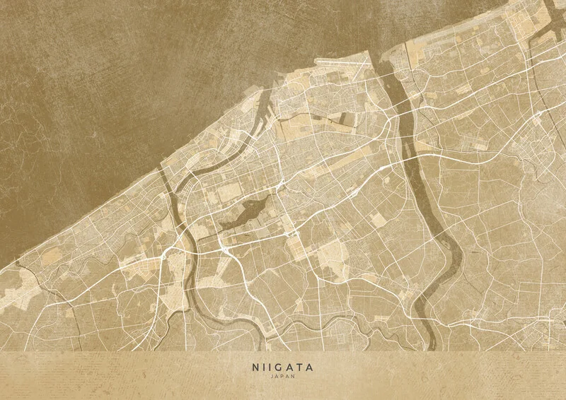 Samolepka Map of Niigata (Japan) in sepia vintage style