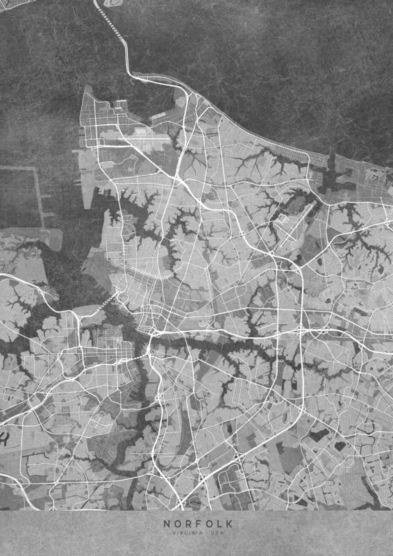 Samolepka Map of Norfolk (VA, USA) in gray vintage style