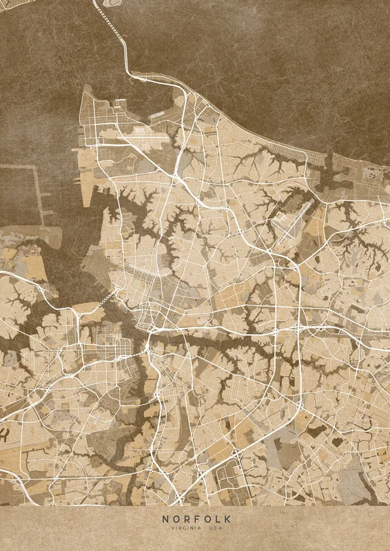 Samolepka Map of Norfolk (VA, USA) in sepia vintage style