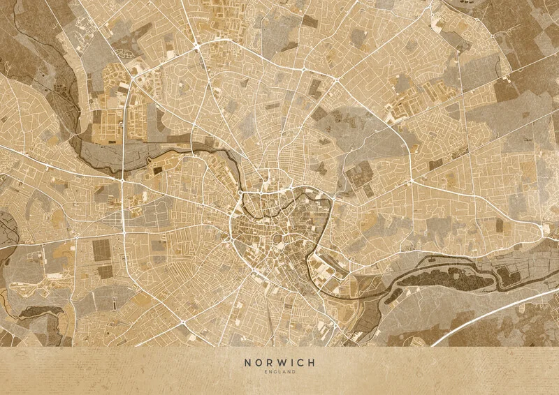 Obraz na plátně Map of Norwich (England) in sepia vintage style