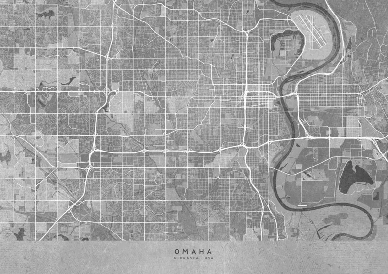Samolepka Map of Omaha (NE, USA) in gray vintage style