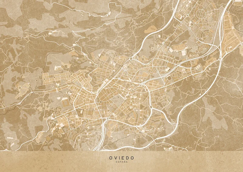 Plakát Map of Oviedo (Spain) in sepia vintage syle