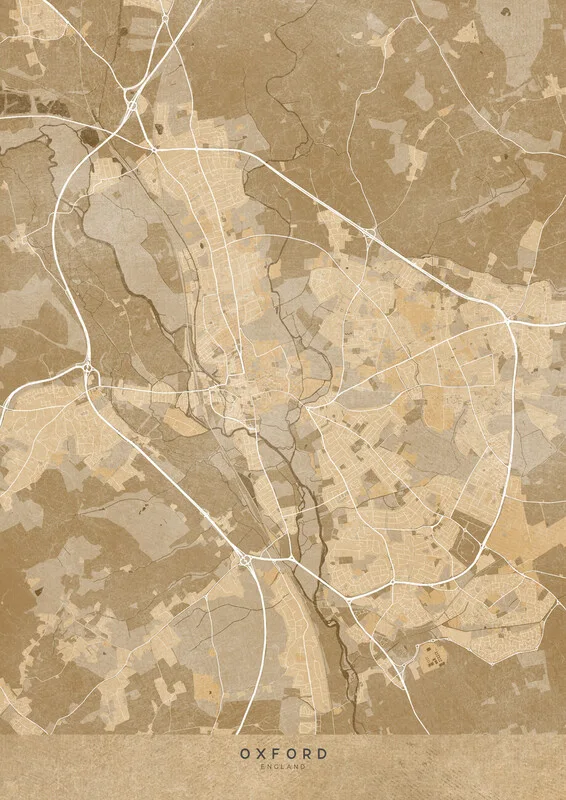 Obraz na plátně Map of Oxford (England) in sepia vintage style