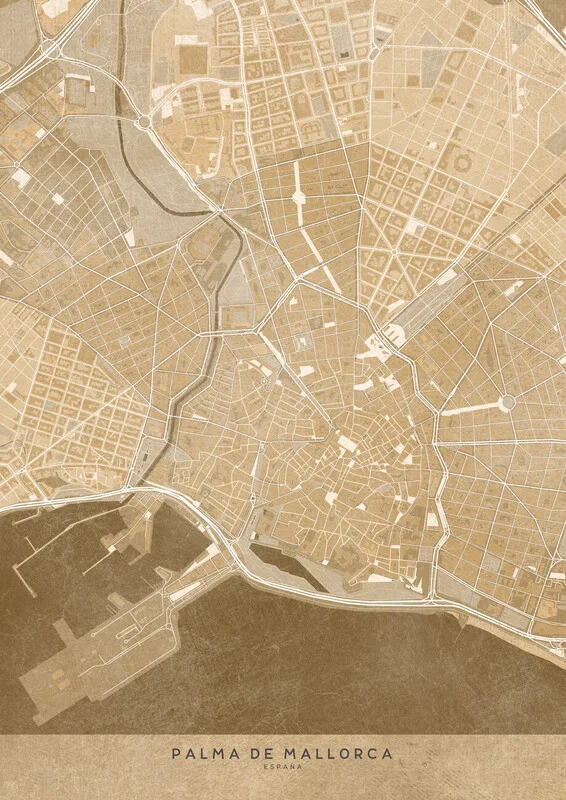 Obraz na plátně Map of Palma de Mallorca downtown (Spain) in sepia