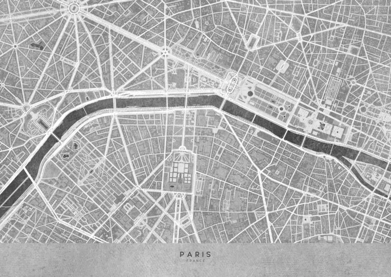 Plakát Map of Paris (France) II in gray vintage style