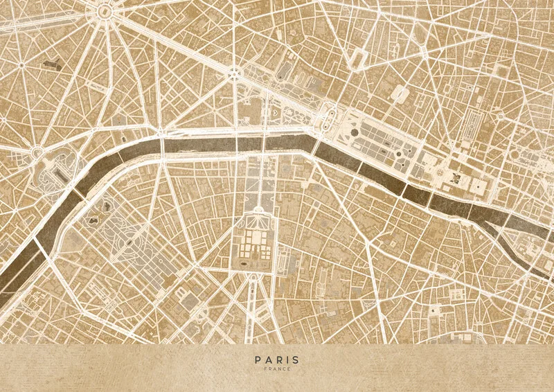 Obraz na plátně Map of Paris (France) II in sepia vintage style