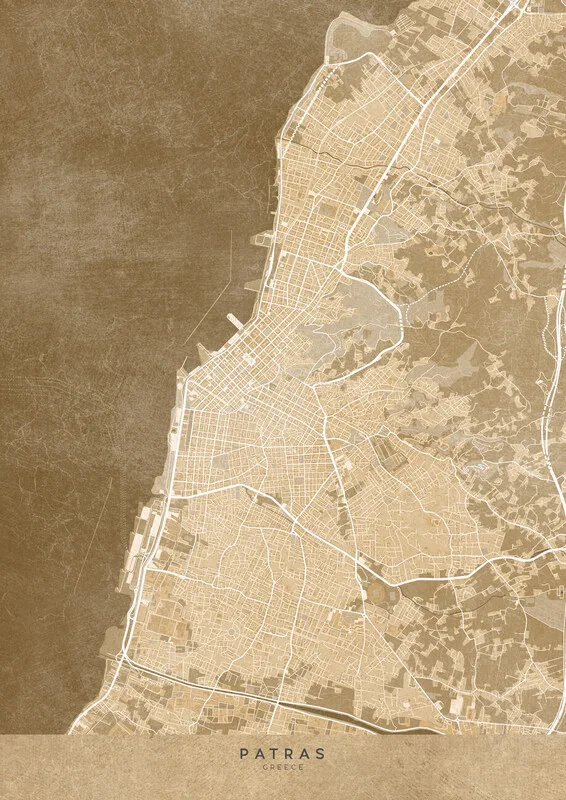 Obraz na plátně Map of Patras (Greece) in sepia vintage style