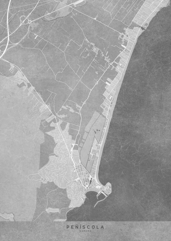 Obraz na plátně Map of Peñíscola (Spain) in gray vintage syle