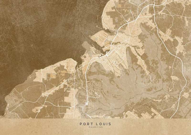Samolepka Map of Port Louis (Mauritius) in sepia vintage style