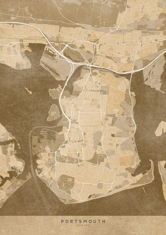 Samolepka Map of Portsmouth (England) in sepia vintage style