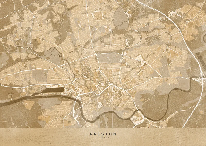 Obraz na plátně Map of Preston (England) in sepia vintage style