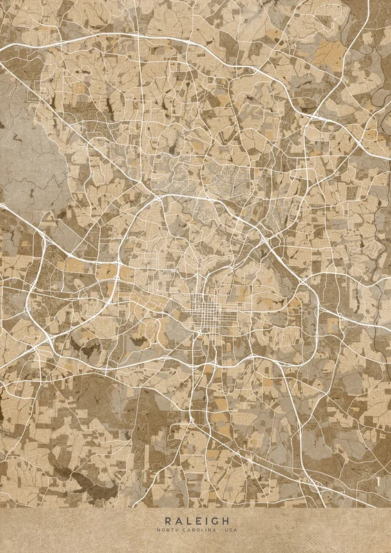 Samolepka Map of Raleigh (NC, USA) in sepia vintage style