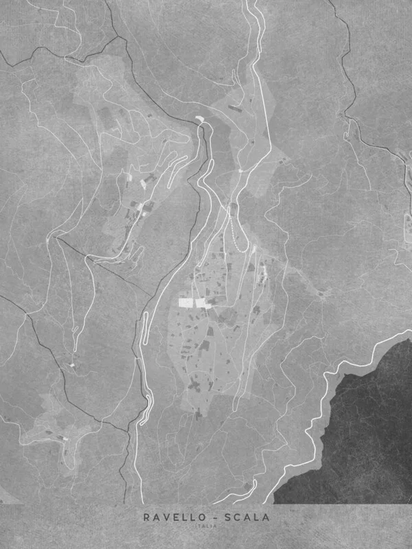 Obraz na plátně Map of Ravello & Scala (Italy) in gray vintage style