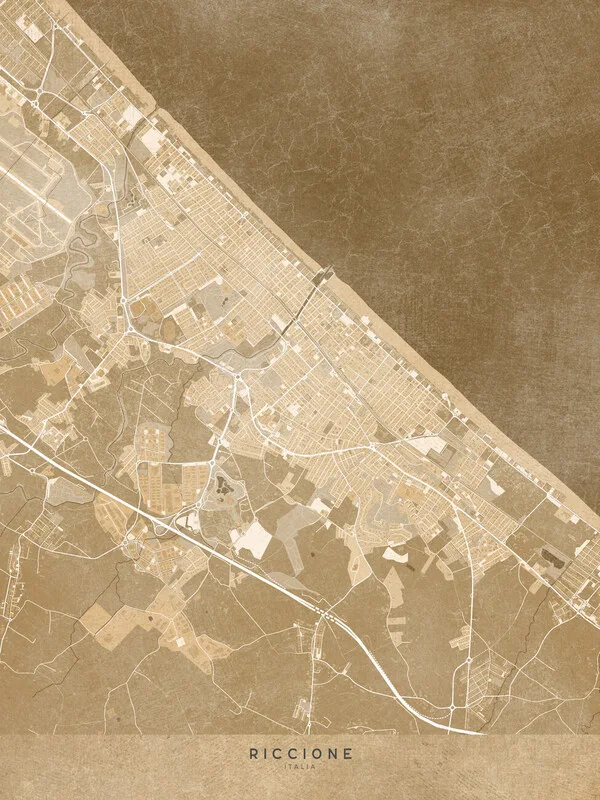 Obraz na plátně Map of Riccione (Italy) in sepia vintage style