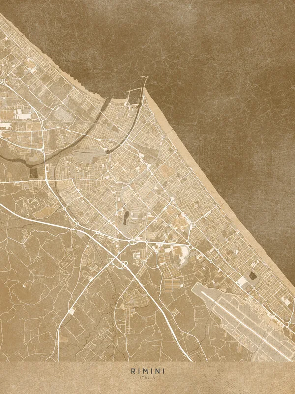 Obraz na plátně Map of Rimini (Italy) in sepia vintage style