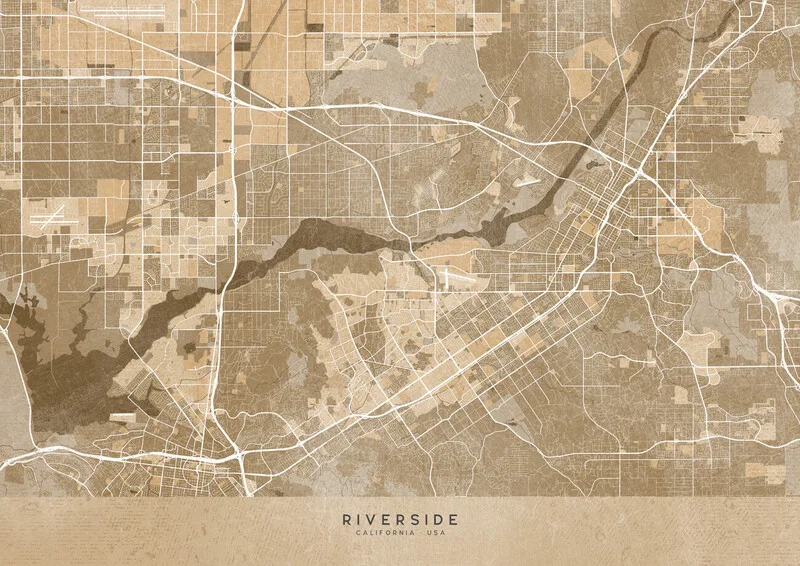 Plakát Map of Riverside (CA, USA) in sepia vintage style