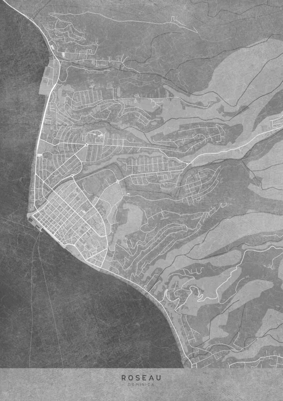 Obraz na plátně Map of Roseau (Dominica) in gray vintage style
