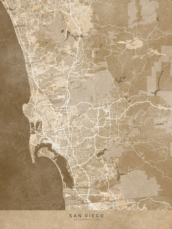 Obraz na plátně Map of San Diego (CA, USA) in sepia vintage style