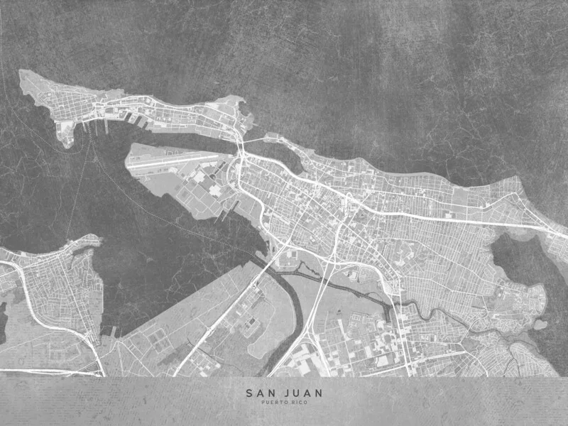 Samolepka Map of San Juan (Puerto Rico) in gray vintage style I
