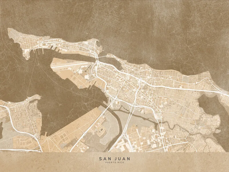 Plakát Map of San Juan (Puerto Rico) in gray vintage style I