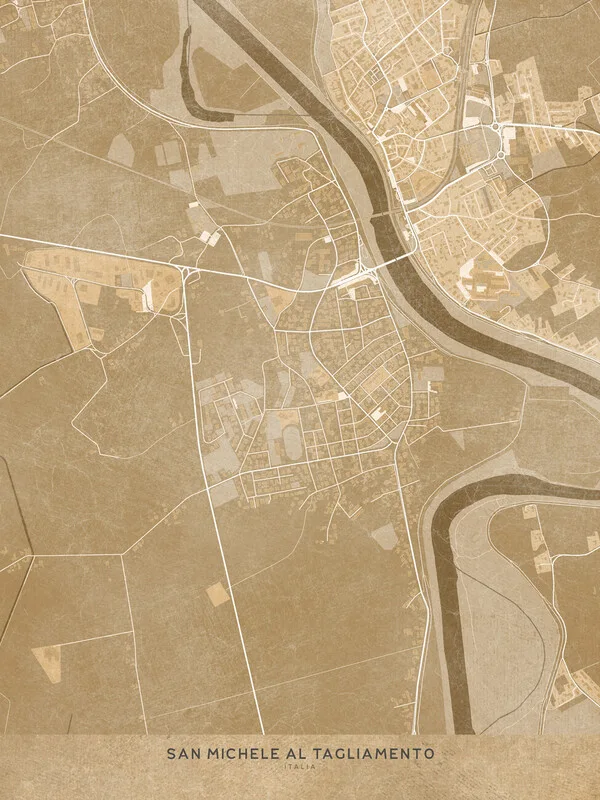 Obraz na plátně Map of San Michele al Tagliamento (Italy) in sepia