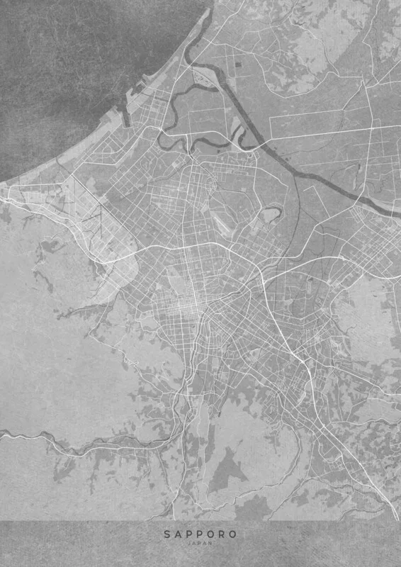 Samolepka Map of Sapporo (Japan) in gray vintage style